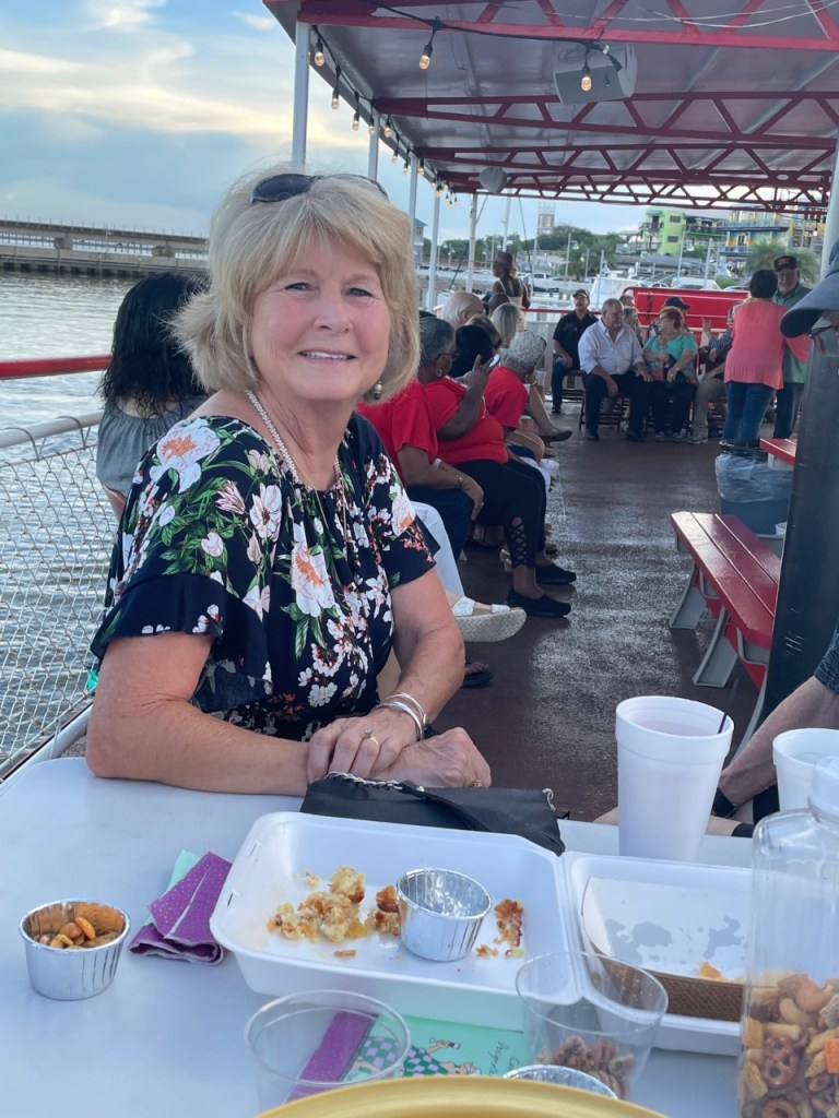 A group of neighbors gathered for a Sunset Cruise aboard the Betsy Ann in Bay St. Louis. Cruising in the Bay at sunset was beautiful. Music, dancing, appetizers and cocktails were enjoyed by all. Lynn and Lance even got to drive the boat!!!
