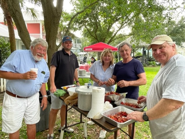 Kudos all the way around to Danny and Hebert for cooking up 150#s of live crawfish and to Brent their new wing man in the boiling process! Over 60 attended the crawfish boil. We enjoyed live entertainment from Davis & Sax and had so much to eat over and above the crawfish….but the main attraction was the crawfish, corn, potatoes and sausage. Now you can’t have crawfish without margaritas and frozen daquiries thanks to Faye for making it a true party! The weather gods coorporated and many new memories and laughs were shared throughout the day! The good times definately boiled at Chapel Hill on Sunday, May 21, 2023.
