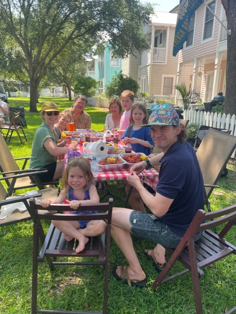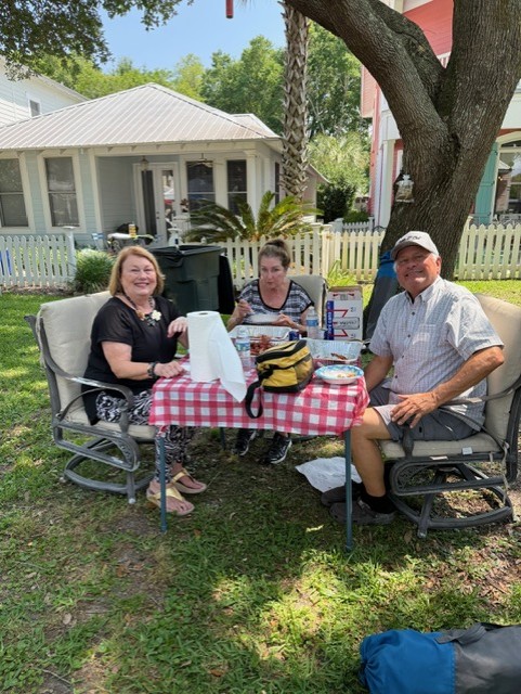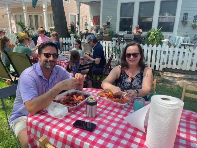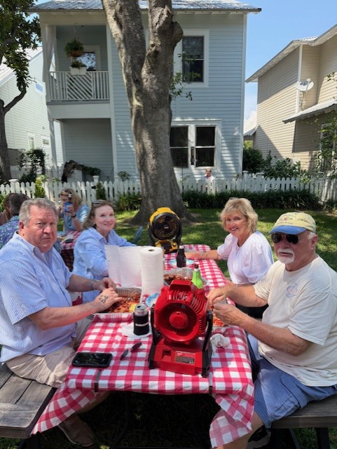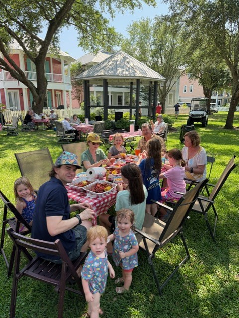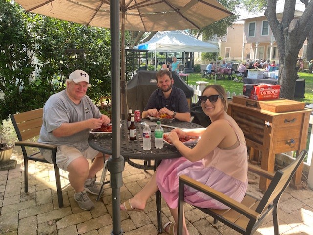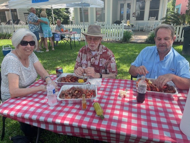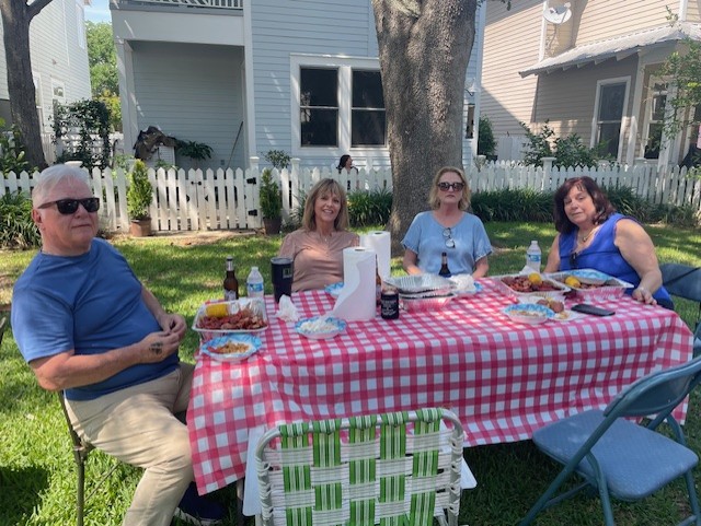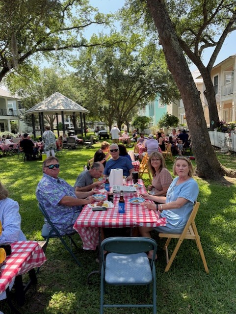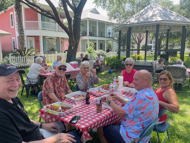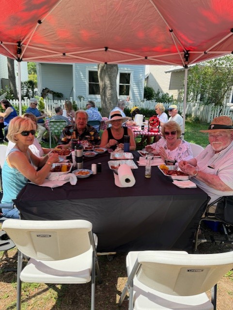 Chapel Hill community gathered on Sunday, May 18 to savor spicey and juicy crawfish. Our Crawfish master was Don Hebert; a good friend of Monique & Danny’s. Brent and Dave assisted throughout the boil. We managed to eat over 150#s of crawfish along with a delicious chicken and sausage jambalaya made by Lance. The social committee lead by Lynn handled all the details from set-up to breakdown. An ice cream bar concluded the feast with Blue Bell and all the toppings. The tone was set with an amazing one-man band from Hattiesburg; Charles “CC” Carter who played a multitude of instruments and sang. Dancing and laughter were spread throughout the common area of Chapel Hill. We also welcomed our newest neighbor, Brandon #27.